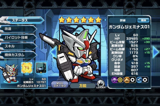 ビーム攻撃が一番高い機体と回避が一番高い機体が同じであった場合の攻撃は恐ろしいものになるのか、ビームダメージ上昇は重複しないのですがビーム攻撃上昇は期待できますしENケージはMAXになり必殺技を発動しそうな雰囲気ではありますね!