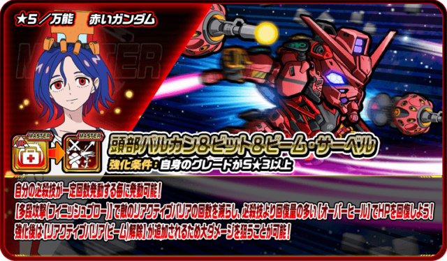 【リアクティブバリア(ビーム)】と【リアクティブバリア(実弾)】で2つの属性から味方を守ることが得意なマスター機体!